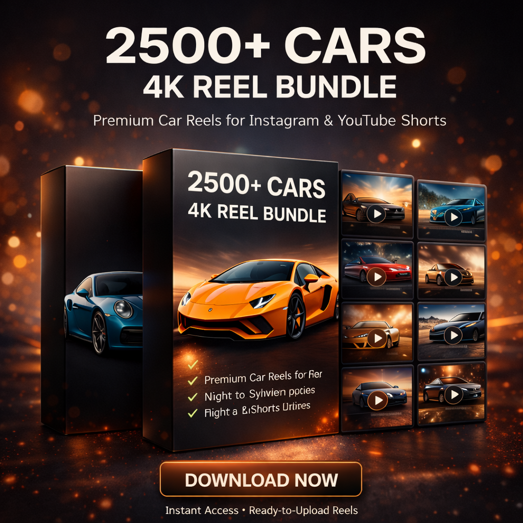 Is bundle me luxury cars, supercars, sports cars, night drives, sunset highway shots aur cinematic slow-motion visuals milte hain jo audience ko instantly attract karte hain aur zyada views, likes aur saves laane me madad karte hain.